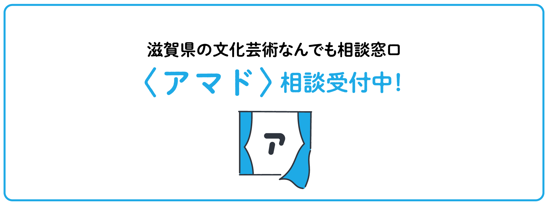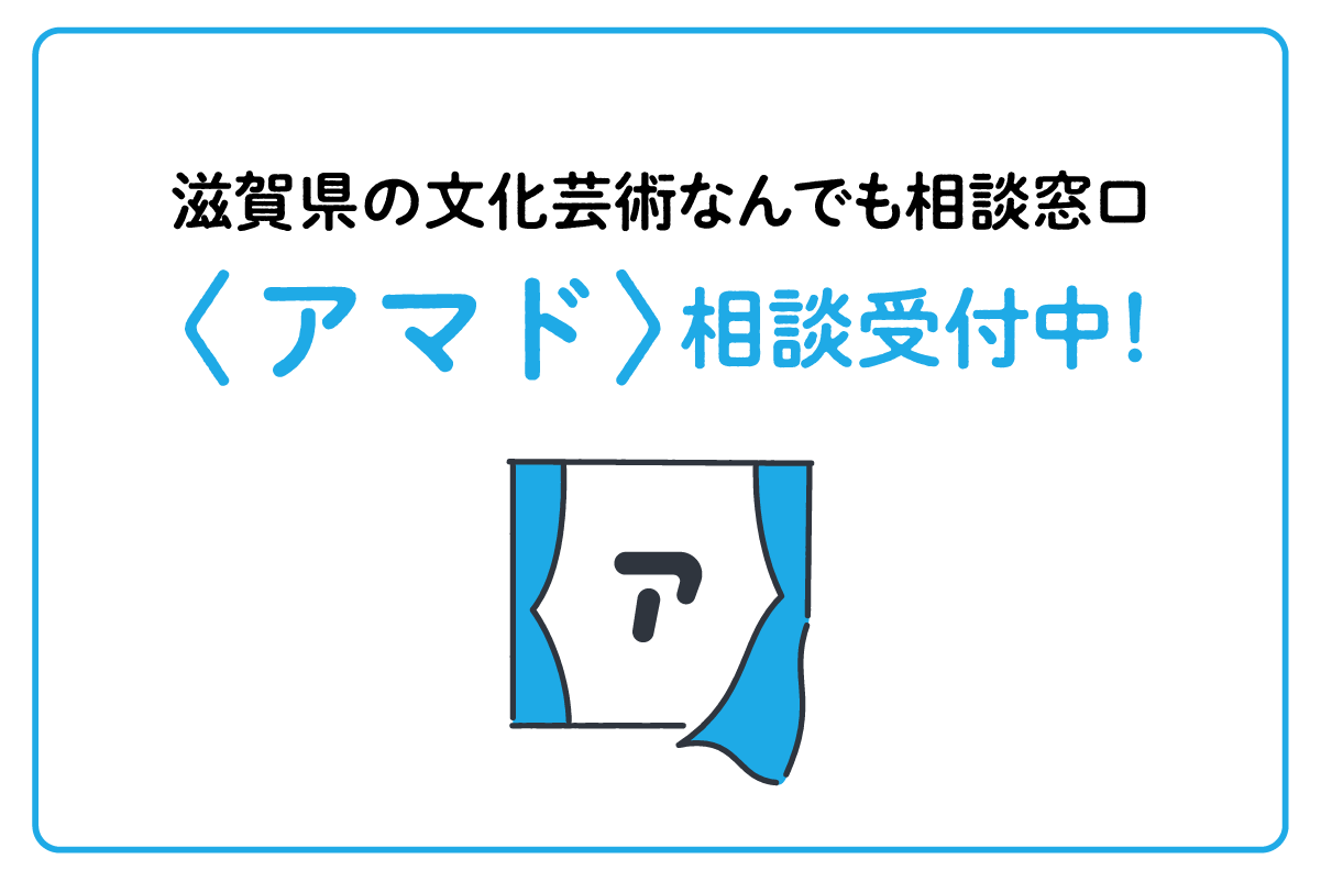 「アートの窓口しが(愛称:アマド)」は滋賀県内で文化芸術に関わる人の相談相手となり、考えるポイントの整理をしたり、適切なサポートにつなげるなど、相談者がご自身で活動を継続・発展させていくためにお手伝いします。